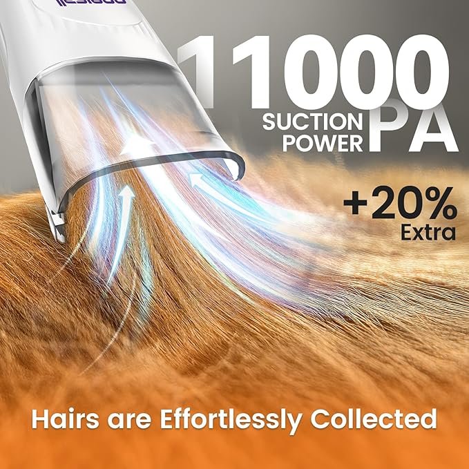 This all-in-one system trims, brushes, and vacuums loose hair at the same time, collecting up to 99% of pet fur before it hits the floor. With a quiet 59 dB motor, multiple attachments, and a large 1.5 L dust cup, it’s designed for comfort, efficiency, and convenience.